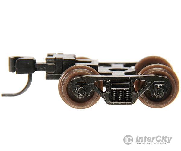 Atlas N Scale Talgo-Type Freight Car Trucks with Accumate Couplers are replacements for trucks with plastic wheels supplied with Atlas and Trainman rolling stock since the 1990s. Trucks and wheels are made of slippery engineering plastic and needlepoint axles will last for years of reliable operation without need for lubrication. Available in several styles of sideframes, they may be used as replacements on other makers' rolling stock too. Couplers are compatible with magnetic knuckle couplers used by other manufacturers and wheelsets can be operated on Code 55 and larger rail. Freight Car Trucks with Accumate Couplers are part of the line of Atlas N Scale trucks, wheels and couplers.