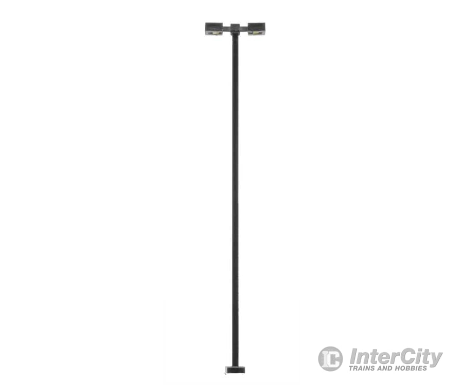 Atlas HO Scale streetlights are ideal for brightening up your city streets. Available in multiple styles, these lights feature metal masts, 3V DC, 20mA LEDs as their built-in light source for either a modern cool white, or a warm white glow. Each light includes an appropriate voltage dropping resistor so the lights can be used with a 6-18V power supply per the manufacturer instructions. Mounting the lights requires drilling a hole in your layout base and running the wires under the layout for best results. Streetlights are available in a variety of styles and configurations. Check out all of the available Atlas HO streetlights.