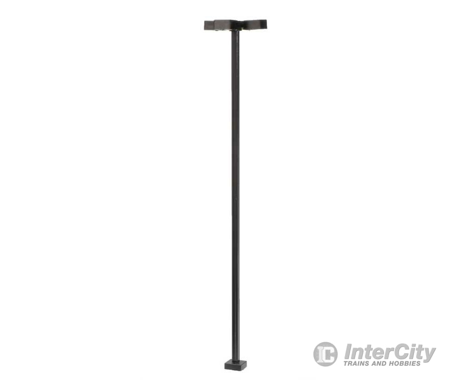 Atlas HO Scale streetlights are ideal for brightening up your city streets. Available in multiple styles, these lights feature metal masts, 3V DC, 20mA LEDs as their built-in light source for either a modern cool white, or a warm white glow. Each light includes an appropriate voltage dropping resistor so the lights can be used with a 6-18V power supply per the manufacturer instructions. Mounting the lights requires drilling a hole in your layout base and running the wires under the layout for best results. Streetlights are available in a variety of styles and configurations. Check out all of the available Atlas HO streetlights.