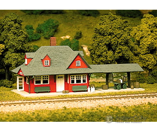 This Atlas HO Scale Passenger Station is the perfect place for passengers to board passenger trains on your railroad. Based on wooden stations used since the early 1900s, this station brings a typical North American depot to your layout. Whether used as a commuter stop or as a rural stop, this kit adds realism to any steam or diesel-era railroad. The Passenger Station kit features plastic parts molded in appropriate colors and includes a wood station building with a concrete platform, a wood station platform canopy on a concrete base, two benches, a platform package scale, a platform baggage dolly and a baggage wagon with luggage. One complete platform section is included in this kit. It can be extended using the matching Station Platform kit 150-707 (sold separately) which includes two platform sections. The Passenger Station is one of many Atlas HO Scale structures.