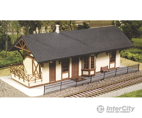 This Atlas HO Scale Maywood Train Station is the perfect place for passengers to board passenger trains on your railroad. Patterned after an 1872-built prototype constructed for the New Jersey Midland Railroad (a Susquehanna predecessor), this plastic model is a full-scale replica of a typical Victorian-era structure that'll look great on any layout. Whether used as a commuter stop or as a rural stop, this kit adds realism to any steam or diesel-era railroad. Features of this easy-to-build plastic kit include separate window glazing, separate brick platform, plenty of small details like finials, benches and more, plus decals for various station names. Add additional platforms using the Station Platform kit 150-707 (sold separately) which includes two platform sections. The Maywood Train Station is one of many Atlas HO Scale structures.