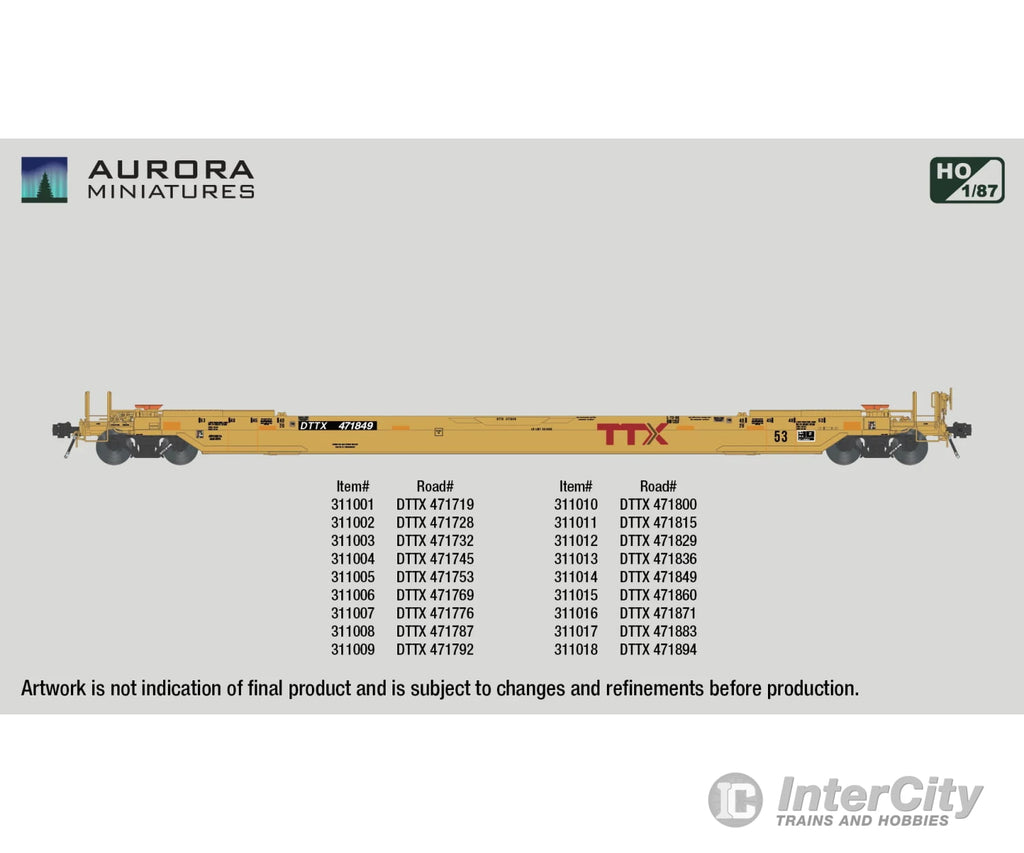 Aurora Miniatures 311005 HO Scale Gunderson 53’ All-Purpose Well Car (Rebuilt) - TTX Company (DTTX) 471753