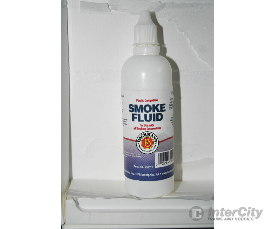 Bachmann Smoke Fluid is plastic compatible and suitable for use in all locomotives and accessories with smoke generators. 4.5oz bottle has a built-in dropper.