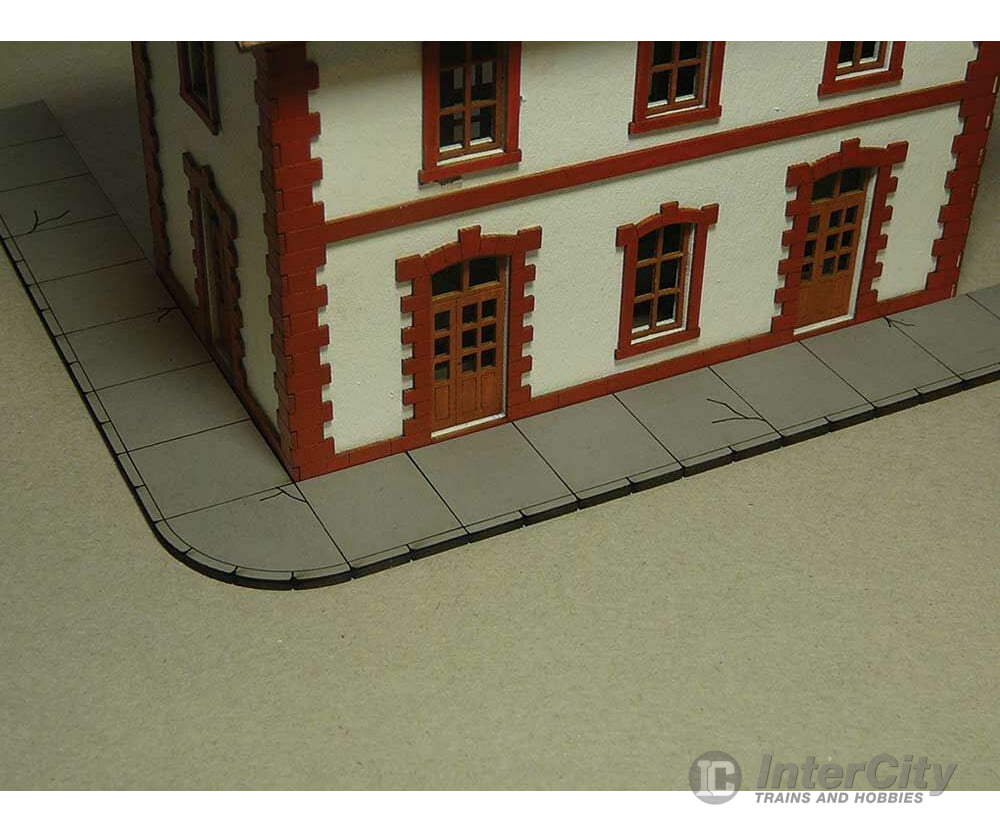Kit features detailed walkway complete with rounded corners, and curb edging.
