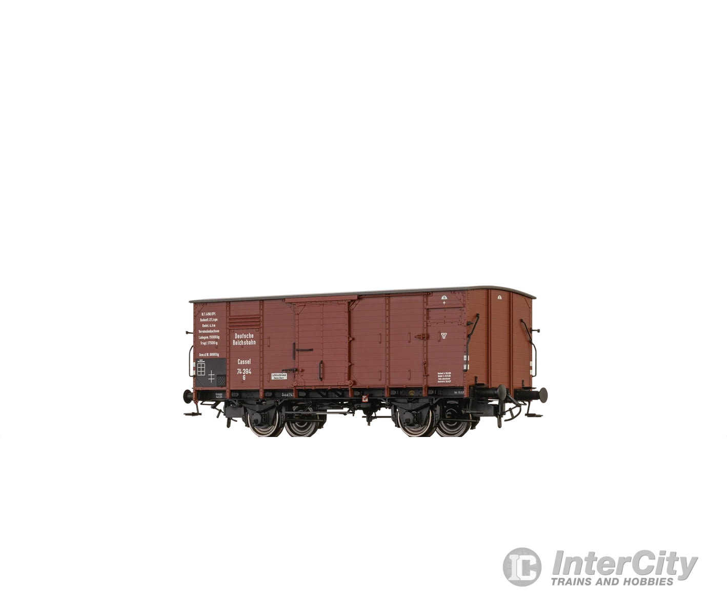 The Deutsche Staatsbahnwagenverband (DWV), founded in 1909, developed the A2 standard wagon based on the existing state-railway covered goods wagons, featuring a 4.5 m wheelbase and a 15-tonne load capacity. From 1911 onwards, this design was produced as numerous series for the Landerbahnen (state railways), private railways and later the Reichsbahn (National Railway). By 1934, an astonishing total of 121,770 wagons of this type, designated G Kassel/Munich, had been delivered to the Deutsche Reichsbahn Gesellschaft alone. Including wagons built for private and foreign railways, it is estimated that more than 160,000 wagons were manufactured based on the A2 master drawing. From 1938 onwards, these wagons were reinforced to withstand the additional stresses caused by the installation of air brakes as well as increased speeds. Diagonal struts were welded into the end sections, and in some cases, the end stanchions were rotated by 90 degrees. By the end of 1952, 35,600 wagons of this type, now designated as G10, were still in service with Deutsche Bundesbahn. Over time, the inventory steadily diminished due to conversions to Gms54 wagons, general fleet modernisation and the resulting decommissioning. In 1976, the last wagon of this type, now designated as Gklm191, was withdrawn from the maintenance fleet. However, many of these wagons remained in use as station or workshop vehicles.