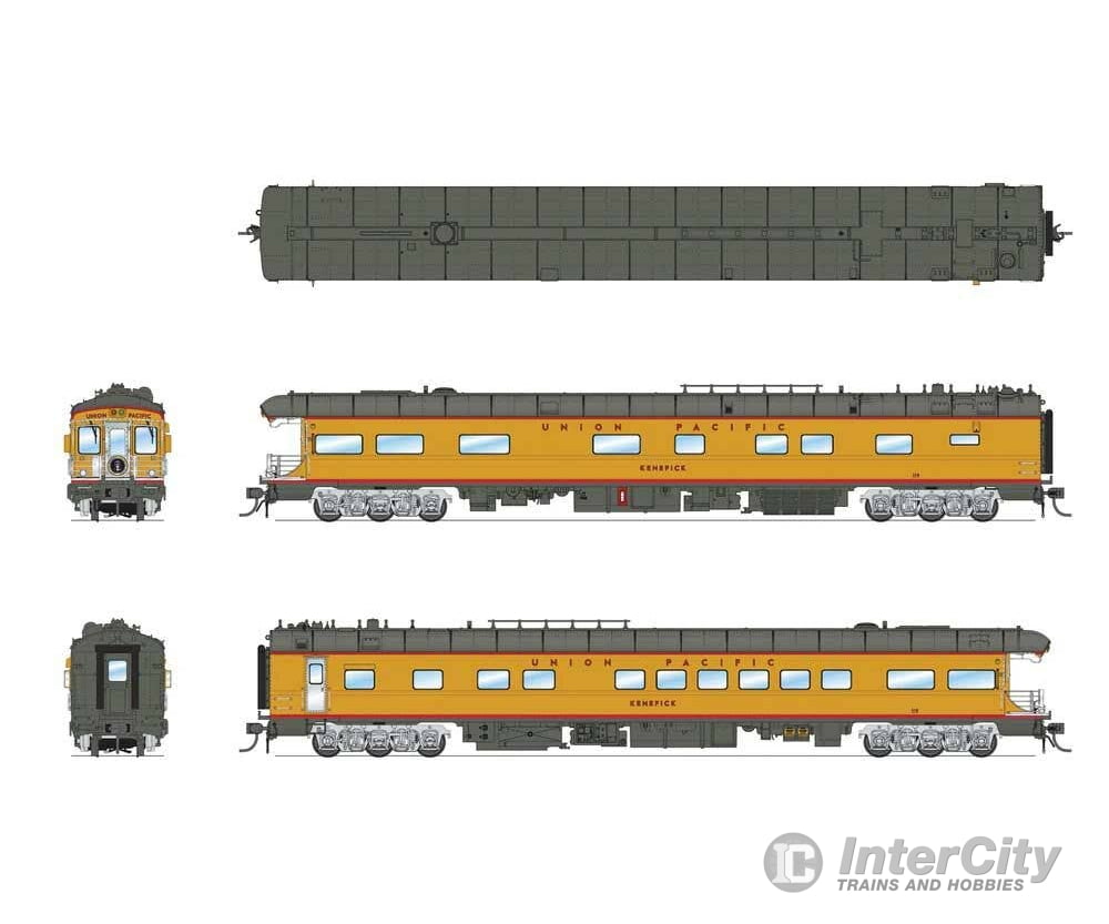 The Broadway Limited HO Scale Business Car Observation is based Union Pacific Car #119, known as "Kenefick." Commonly found included in consists of Union Pacific's business car fleet, it has been roaming the Union Pacific system for decades. The car was built in 1950 as coach No. 5446. It was rebuilt to business car no. 99 in 1963 and officially named the Kenefick in 1988. Among the many miles car 119 has traveled, there have been several special occasions it has been a part of. Two of the most notable trips 119 took were when Big Boy 4014 traversed the country in 2019 and bringing up the rear of President George H.W. Bush's this detailed model of #119 is patterned after its 2000s appearance. The car boasts a lighted interior, marker lights, tail lights, and individually controllable ditch lights. The Kenefick model has era-specific decoration, antenna arrangement, appropriate trucks and underbody details, and other roof features. The model is loaded with detail inside and out complete with colored interiors. The cars are equipped with Kadee(R) magnetic knuckle couplers and will operate on 18" radius and larger curves, but larger curves are highly recommended. The Kenefick Business Car Observation is part of the line of Broadway Limited HO Scale passenger cars.