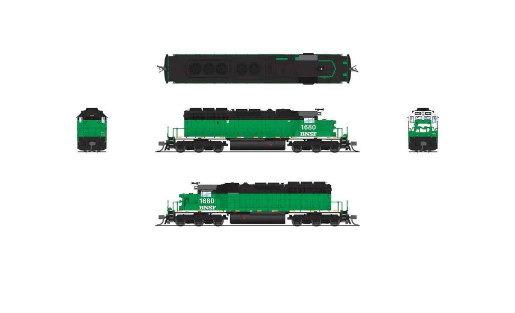 The N Scale Broadway Limited EMD SD40-2 is based on one of the most popular diesels ever built. Introduced by EMD in January 1972, the SD40-2 is one of the most popular diesel locomotives of all time. Between 1972 and 1989, EMD built nearly 4,000 units. These 3,000 horsepower machines were found to be more reliable than higher horsepower locomotives, and the SD40-2 became the standard of the industry for several decades. The SD40-2 shares a common frame with the SD38-2 and the SD45-2. The frame was lengthened to accommodate the new HT-C trucks, which were 1.5 feet longer than the Flexicoil truck found on the SD40's. With a longer frame, but similar sized long hoods, the SD40-2's have distinctive "porches" on either end. These empty areas are good spotting features for SD38-2 and SD40-2 locomotives. The SD40-2 can be further distinguished from the SD38-2 by its three roof-mounted radiator fans and a single large exhaust stack. This Stealth Series no-sound/DCC-ready model operates on DC out of the box, or a modeler can easily install their DCC decoder of choice. Out of the box, front and rear lights are directional, and other lights are always ON with track power. Additionally some lighting functions may be missing depending on selected aftermarket decoder the modeler installs. This model includes a motherboard with a NEXT18 18-pin decoder socket so you can add your favorite DCC or sound decoder when you're ready. It also features a built-in speaker so you won't have to add one later. Other features include a heavy die cast chassis and select roadname-specific details. Its wheels are profiled to operate on Code 55 and larger rail and curves of 9-3/4" radius but larger curves are recommended. The EMD SD40-2 is one of many Broadway Limited N Scale locomotives.