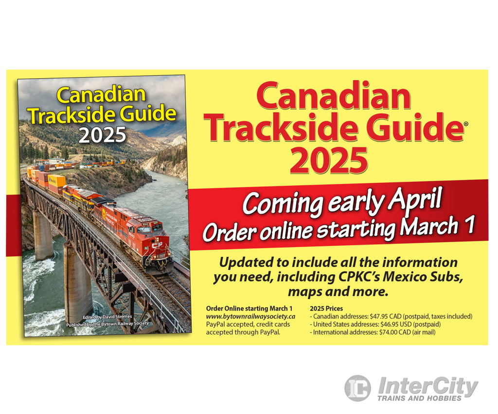 The 2025 edition of the Canadian Trackside Guide® is the Bytown Railway Society’s 43rd edition. Now expanded to cover 800 updated 5½” x 8½” pages current to February 1, 2025