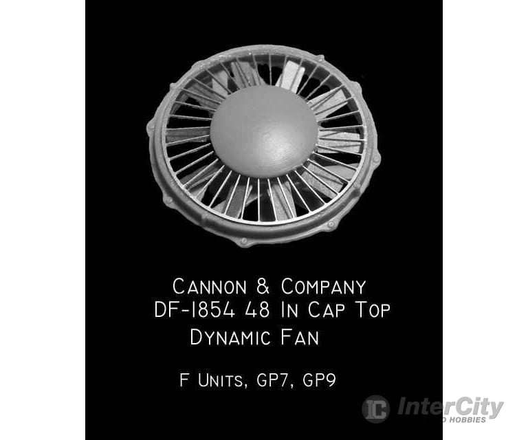 A necessary detail for certain HO Scale first-generation EMD diesels, the Cannon and Company 48" Cap-Top Dynamic Brake Fan is perfect for detailing F Units, GP7 and GP9 locomotives. This package includes finely molded plastic parts for two fans including internal blade details. For detailing EMD diesels to fit your specific prototype see the entire line of Cannon and Company HO Scale EMD locomotive details.