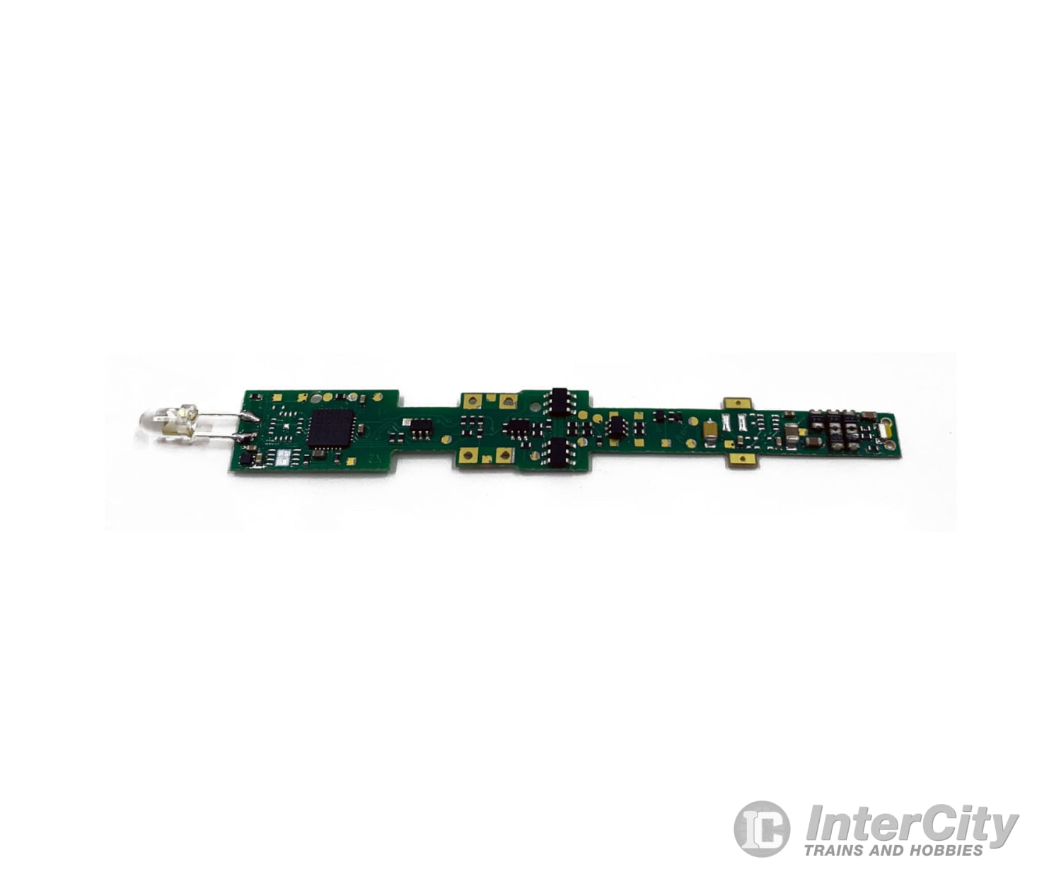 ▪ Drop-in light board replacement decoder for Kato “K2” form-factor boards, allows decoder to be moved between different locomotives. ▪ Series 7 Enhanced Decoder Features. ▪ XF expanded function capability, allows user remap of function keys 0-28 to function output leads. ▪ Firmware may be user updated using a Digitrax USB equipped Command Station with Sound Loader software in decoder IPL mode. ▪ 4 Digitrax FX3 Functions-Control lights and functions for prototypical lighting effects and on/off control. ▪ Configurable FX3 Pulse Function available on all function outputs. ▪ On board white leds for headlights. ▪ Digitrax LocoMotion® System – Lets your trains run like the real thing! ▪ 2 Digit and 4 Digit Addressing. ▪ Basic, Advanced & UniVersal Consisting. ▪ SuperSonic motor drive for silent operation. ▪ Direct and Operations Mode programming. ▪ Program CVs using any Digitrax Compatible Control system without having to buy any extra equipment. Decoder Reset by CV8. ▪ Transponder Equipped ready for transponding ID on your layout. ▪ Power-on Motor Isolation Protection, helps prevent damage to your decoder. ▪ DCC Compatible. ▪ FCC Part 15, Class B RFI compliant. ▪ Operates on DCC track voltage typical 9V minimum. to 22V maximum.