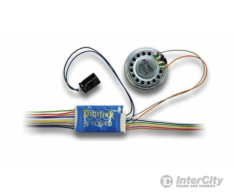 Wired mobile decoders with SoundFX and accessory type functions for most HO scale locomotives. Preloaded with selectable steam and diesel sound schemes. Decoders include 28mm Speaker & 330uF capacitor. Please Note: The SFX064D and SFX0416 have no motor functions and are designed to be used in conjunction with a standard mobile decoder such as a DH123D etc.
