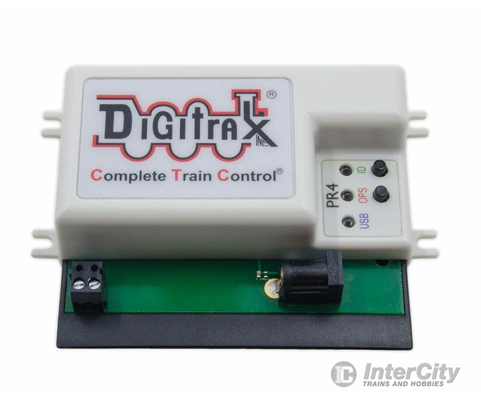 The Digitrax PR4 PR4 USB to LocoNet Interface with Decoder Programmer seamlessly switches between computer interfact and decoder programming modes automatically without having the press any buttons. PR4 is electrically isolated between USB and LocoNet for stability and protection. Using Digitrax PR4 Programmer and Digitrax SoundLoader software with your PC and programming track, you can create, manage, test and download sound projects (.spj files) in your Digitrax SoundFX decoders for easy sound customization.
