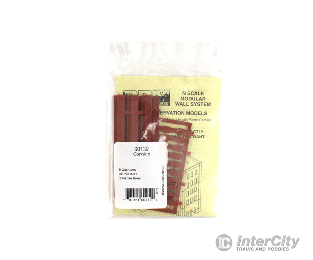 Nine Cornices that are 3 3/8" w x 1/4" h (8.57 cm x 6 mm), plus pilasters.