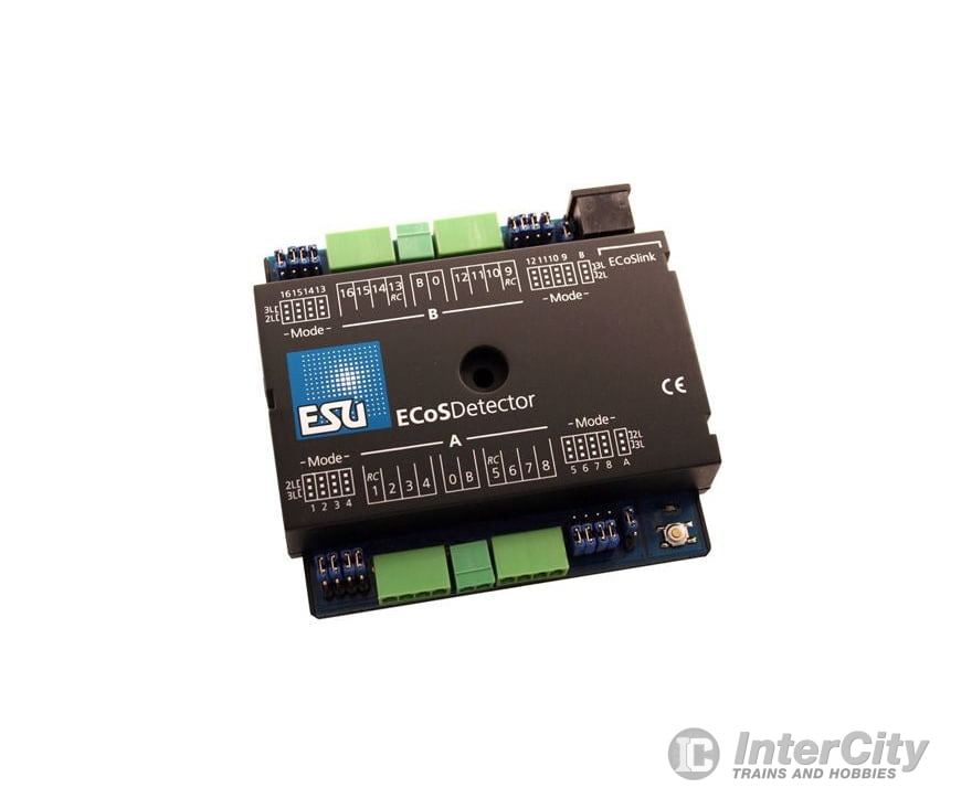 The ECoSDetector is able to monitor up to 16 track sections and reports the presence of a loco (track occupancy). Each of the 16 inputs has a maximum current capability of 3A. The ECoSDetector module also has two separate power inputs, and can be supplied from two separate Booster units.