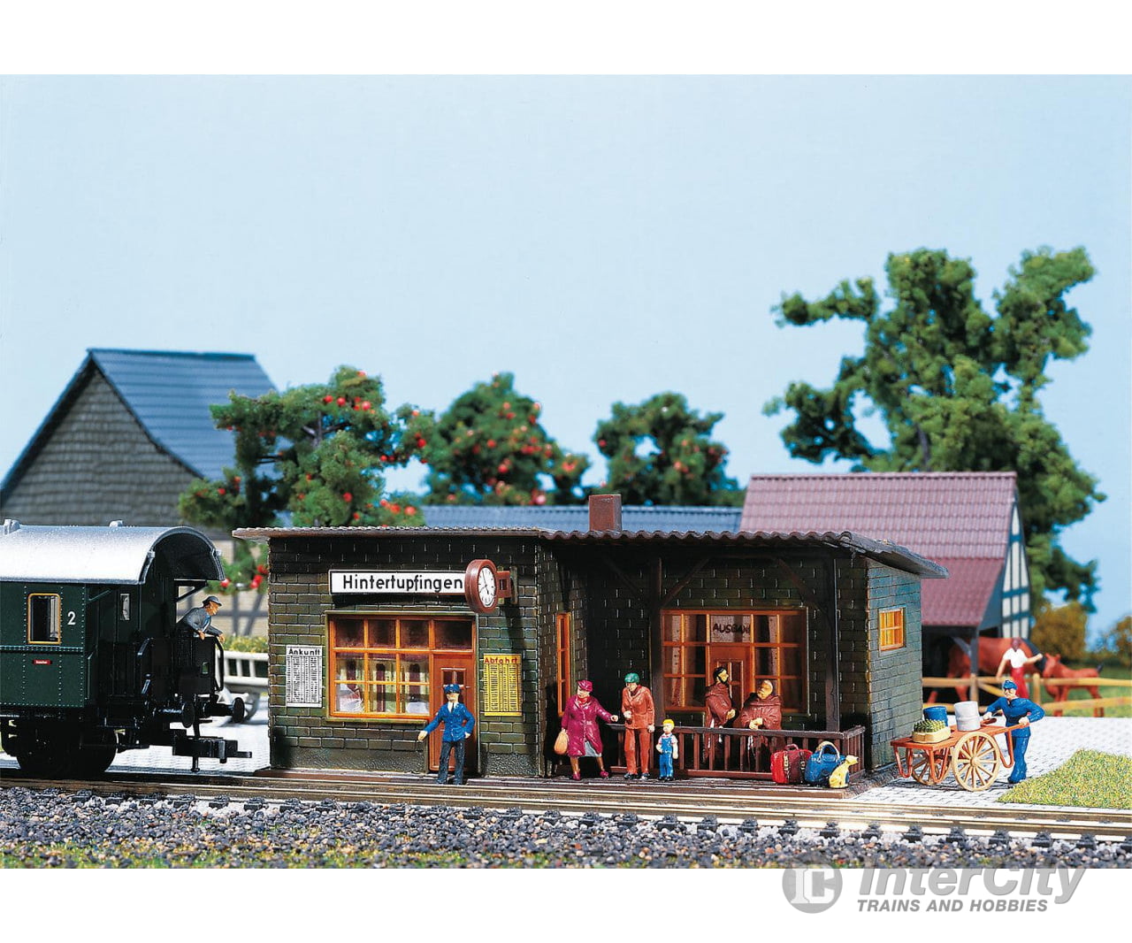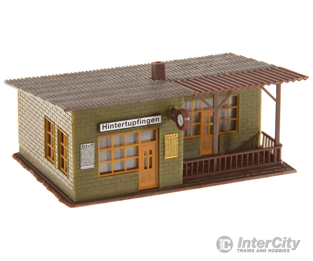 Wayside stop with glass-roofed vestibule and station clock; especially suitable for small layouts and branch lines.
