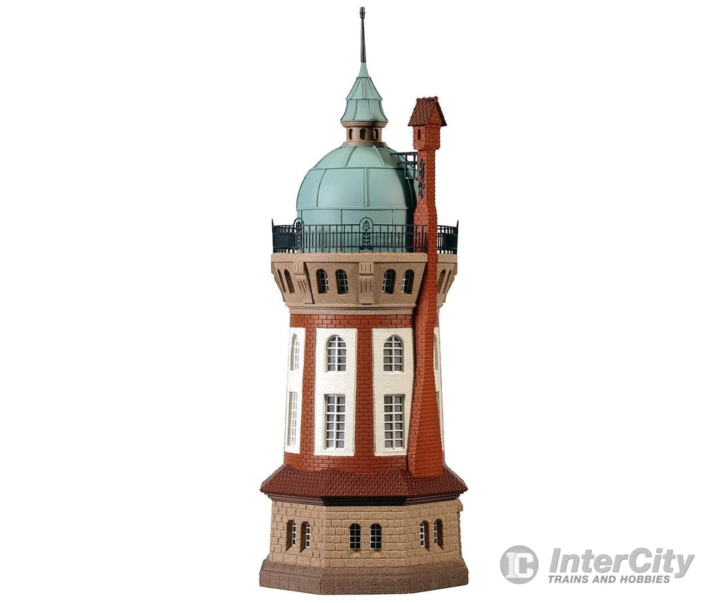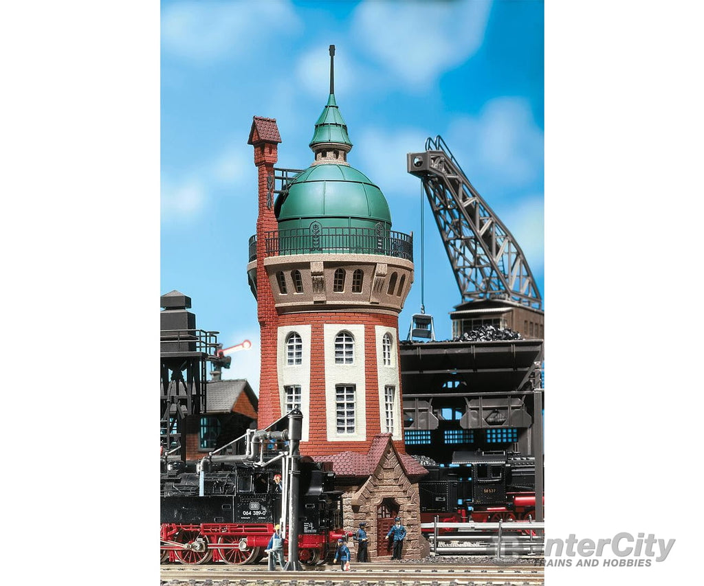 Water tower from Bielefeld with masonry entrance area, clinker tower and spherical water holder. Such water towers are not only used in the service area, but also for the water supply of towns.