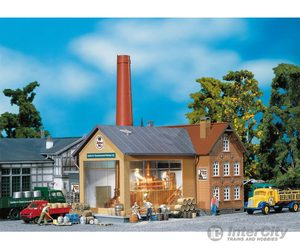 With polished copper boiler in the brewing house. Interesting lighting effects when illuminated. The smoke stack can be fitted with a smoke generator.