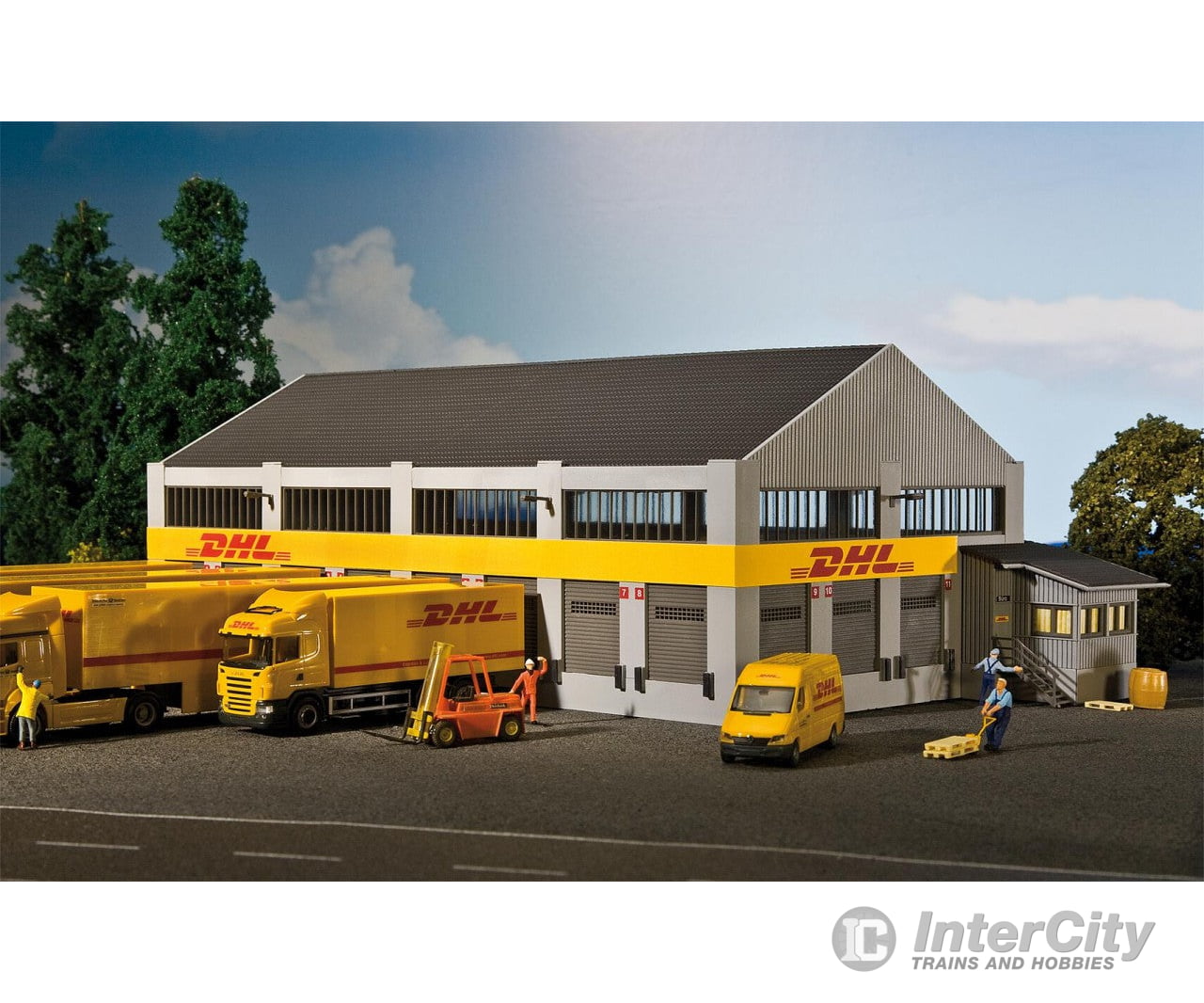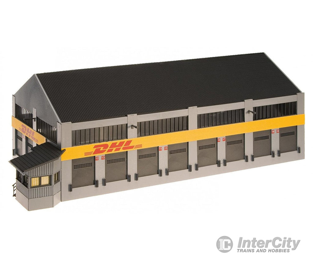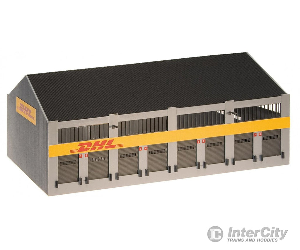Modern freight hall built for DHL, fitted with 19 rolling shutter doors at the loading platforms and an adjoining office wing. Several models can be juxtaposed or built side by side. The current Car System line offers the suitable DHL vehicles.