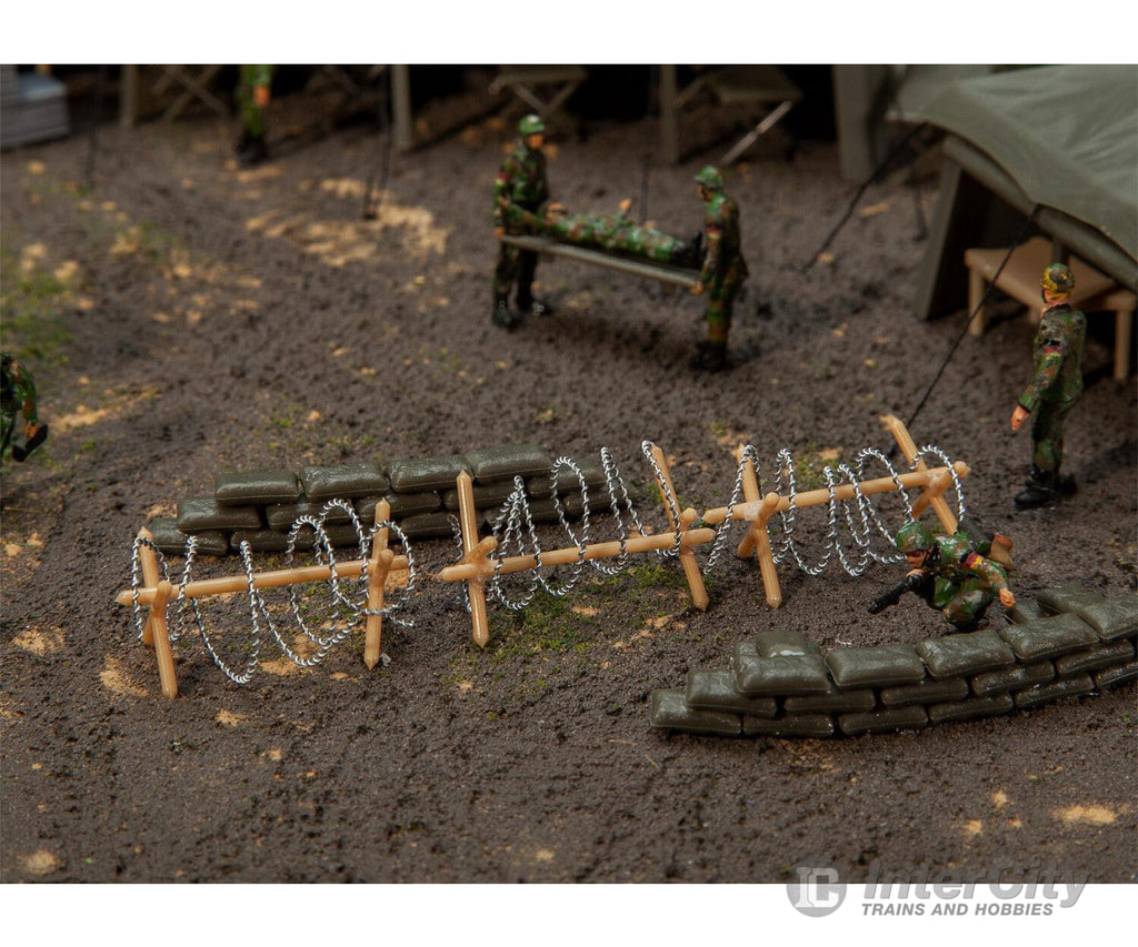 Kit with 15 movable »Cheval de frise« obstacles reinforced with barbed wire. This building kit contains: 45 single parts in 1 colour.