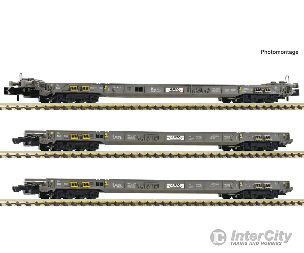 The set contains three 8-axle low-floor wagons for the transportation of lorries and semi-trailers of Hupac.