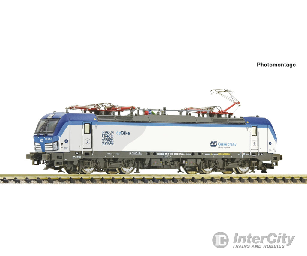 Since 2017, the CD Vectron locomotives (193 289-298) have been used for international express trains, mainly on the EuroCity routes from Prague to Berlin/Hamburg/Kiel and to Budapest. IIn 2021, the CD not only purchased their first Vectron, but also hired six additional locomotives from the Slovakian leasing company Rolling Stock Lease (RSL). These were given a different livery to those leased from ELL. In addition to the CD logo, a quarter of each side is covered in grey with a unique QR code. Each locomotive advertises a different CD product,the 193 696 for CD Bike (bicycle hire).