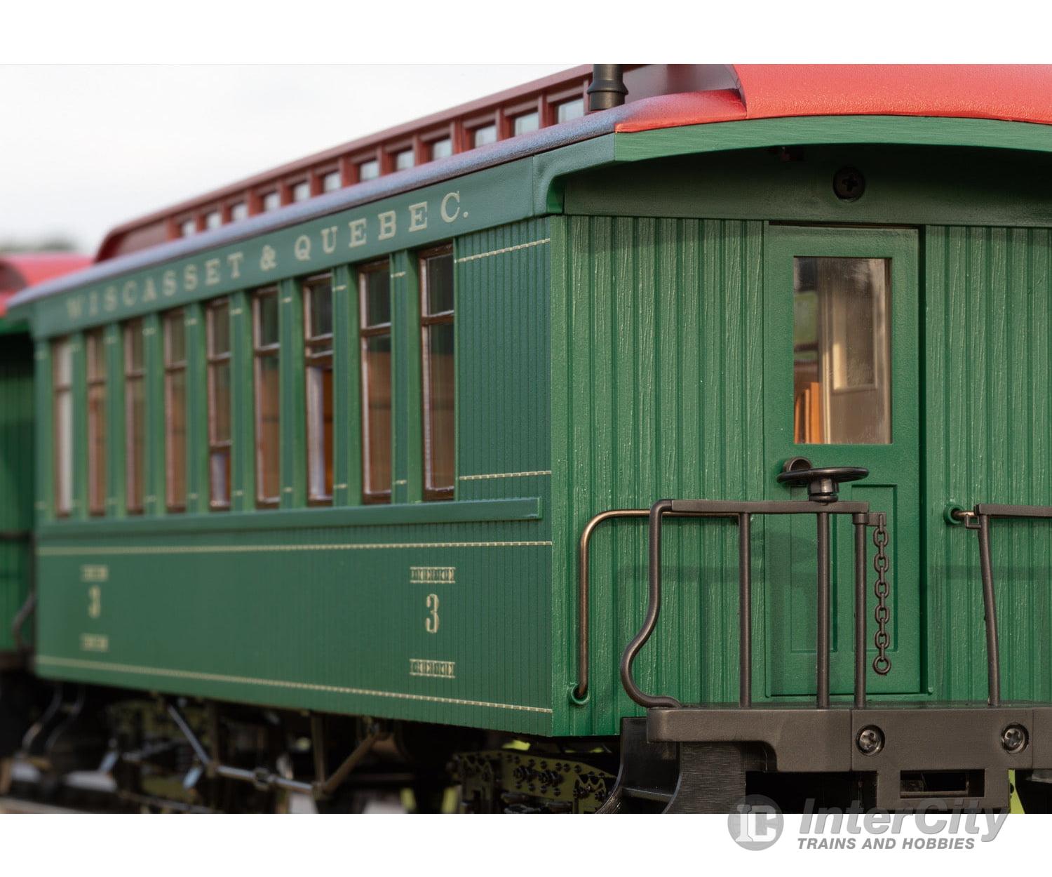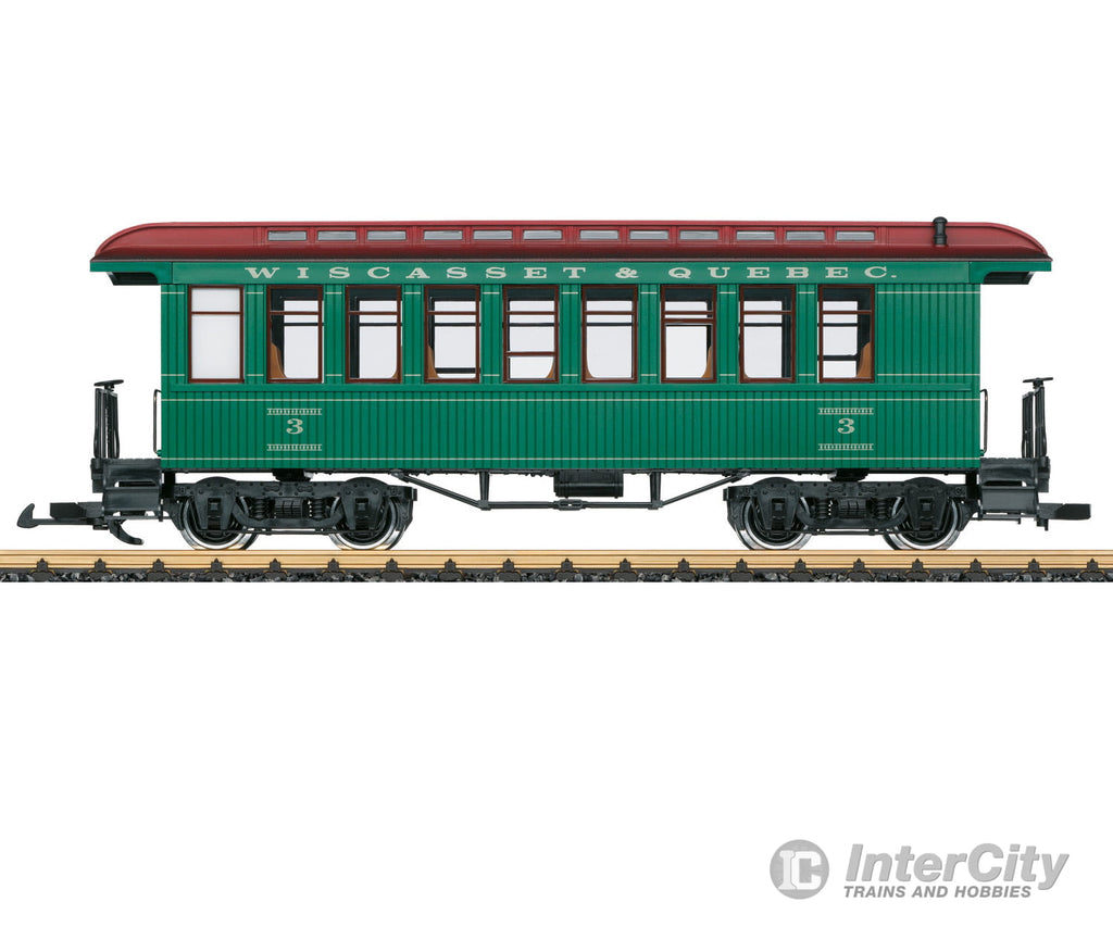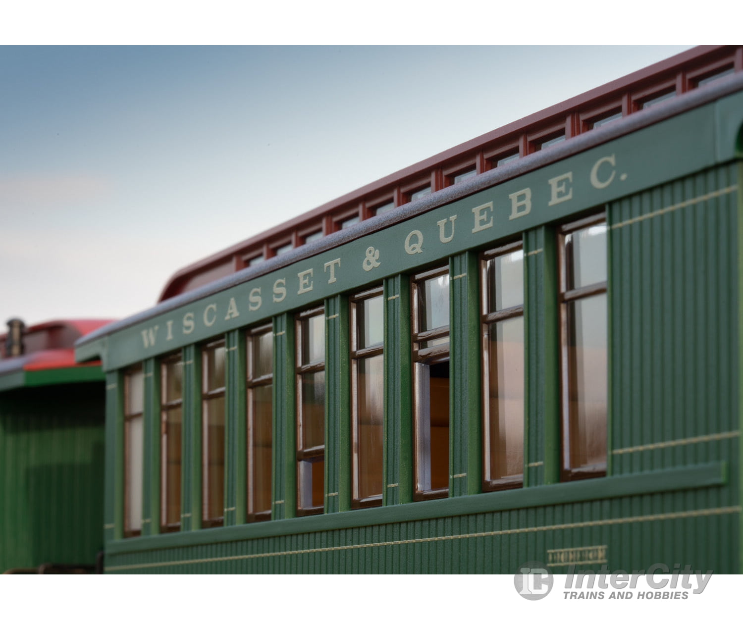 The typical American old-timer cars are used on the museum trains running on the Wiscasset, Waterville, and Farmington Railway. They can be recognized by the clerestory in the center of the car roof. Usually, only 2 to 3 cars are coupled to a train pulled there by the small locomotives. Mixed trains of passenger cars and freight cars are customary. With the dark green paint scheme, the cars are the same as a widespread color scheme, which is also used on cars of the Durango & Silverton Railroad or the White Pass & Yukon Railroad among others.