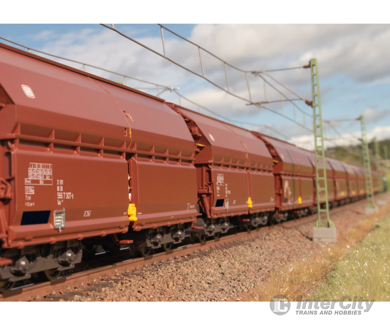 Model: These hinged roof cars are to scale and are detailed in their construction with many separately applied details. There are 24 different car numbers. All the cars have 2 separately applied transition platforms, and 12 cars have a brake wheel at Car End 2. The side of each car includes a step for boarding the car and boarding grab irons as well as boarding holes on the upper body. The hinged roof can be swung manually to the side. All the cars in the display are individually packaged. The buffer height on all the cars conforms to the NEM. Length over the buffers per car 14.4 cm / 5-11/16. DC wheelset per car E700580.