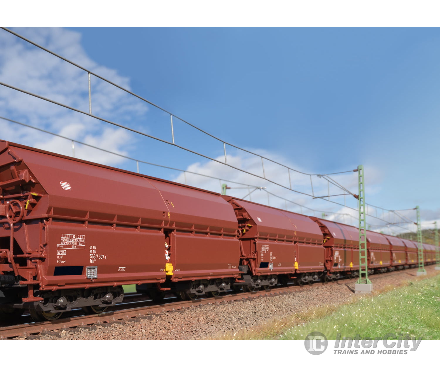 Prototype: 24 German Federal Railroad (DB) type Tals 968 four-axle, high-capacity hinged roof cars. Used to transport moisture-sensitive bulk freight. Reddish brown basic paint scheme. All the cars have 2 transition platforms. 12 cars have a handbrake at one transition platform and 12 do not have a handbrake. Type 665 trucks. The cars look as they did around 1984.
