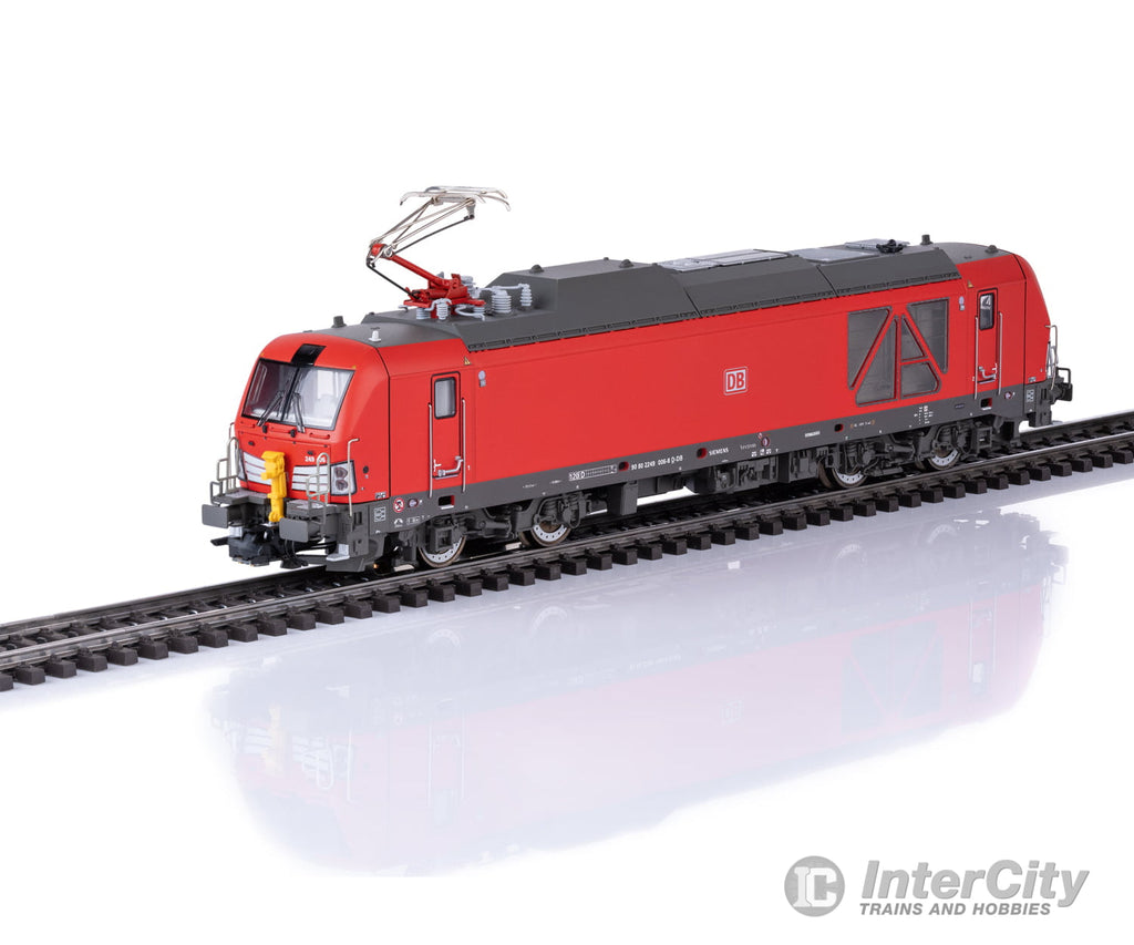 Model: The locomotive has an mfx+ digital decoder and extensive sound functions. It also has controlled high-efficiency propulsion. 4 axles powered. Traction tires. Triple headlights and dual red marker lights change over with the direction of travel, will work in conventional operation, and can be controlled digitally. The headlights at Locomotive Ends 2 and 1 can be turned off separately in digital operation. When the headlights are off at both ends of the locomotive, the double "A" light function is on at both ends. The cab lighting changes with the direction of travel and can be controlled digitally. Control desk lighting can be controlled digitally. Engine room lighting can be controlled digitally. Long-distance headlights can be controlled separately in digital operation. Maintenance-free warm white and red LEDs are used for the lighting. A buffer capacitor is included. The pantographs can be raised and lowered digitally. There are Telex couplers at both ends that can be controlled separately in digital operation. Coupler maneuvers are available. Brake hoses and switching couplers are included for installation on the locomotive. Length over the buffers approximately 23.6 cm / 9-1/4".