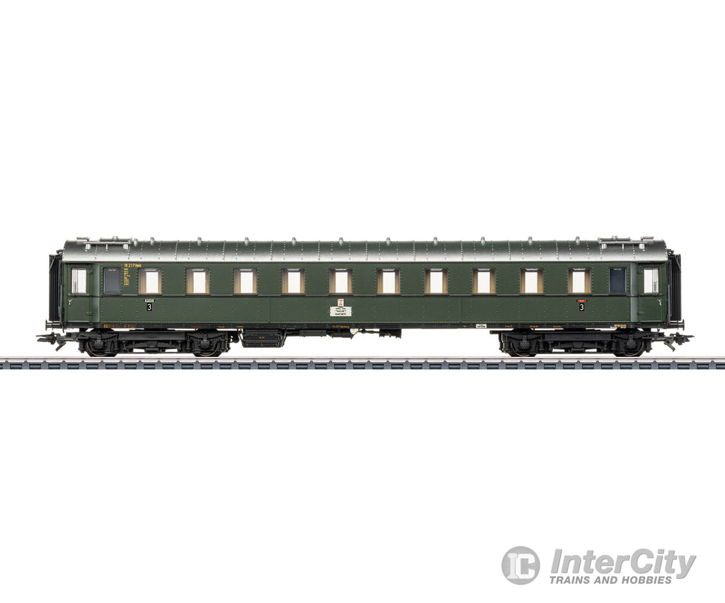 Model: The cars have detailed construction and are full-scale in length. The minimum radius for operation is 360 mm / 14-3/16". With factory-installed interior lighting with warm white LEDs and a buffer capacitor. The interior lighting works using the factory-installed current-conducting close couplers in conjunction with the type ABC4ü, express train passenger car, 1st/2nd/3rd class, from item 42491, which is fitted with a pickup shoe for current pickup. The cars must be coupled in a defined sequence for this. A short replacement corridor connection is included. Imprinted car route board and running number. A concertina fold shows an illustration of the complete train and the prototypical arrangement of the individual cars in the train consist. Length over buffers 25 cm / 9-7/8".