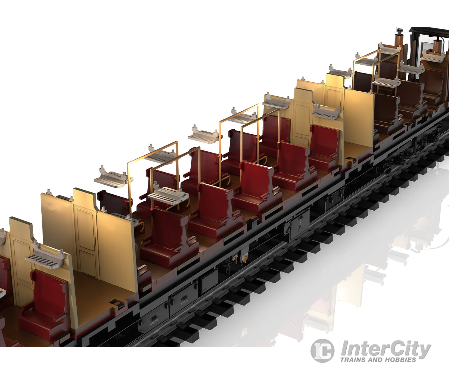 Model: The Halberstadt Center Entry Cars are completely new tooling. The interior details are done in multiple colors. All the cars have factory-installed LED interior lighting. A buffer capacitor is built into each car to bridge over short areas without current. One car has factory-installed maker lights. The cars are equipped with operating, current-conducting close couplers. The interior lighting works in conjunction with the marker light car and the prescribed car order must be maintained for this purpose. The trucks, roof forms, side walls, and underbodies have many separately applied details and are specific to the car types. The buffer height conforms to the NEM. Brake hoses, heating lines, and prototype couplers are included as separate parts that can be installed on the cars. The minimum radius for operation is 360 mm / 14-3/16". All the cars are individually packaged and come in a master package. Length over the buffers approximately 84.6 cm / 33-5/16".