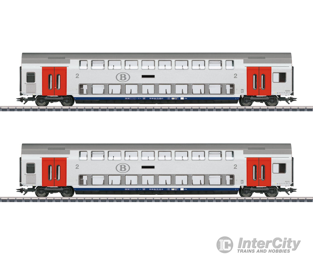 Prototype: Two SNCB type M6 bi-level cars, 2nd class. Light gray basic paint scheme. The cars look as they did starting in 2023.