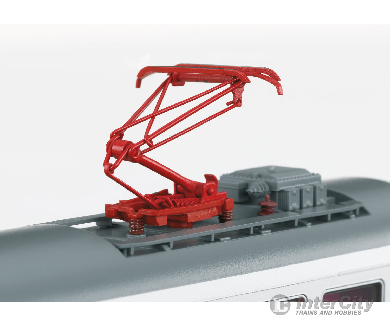 Model: The car has factory-installed LED interior lighting and current-conducting close couplers. The interior lighting works in conjunction with the IC cab control car and can be turned on and off digitally from a decoder in the cab control car. Red transparent marker light inserts are on the ends of the car. The skirting is designed to be specific to the type of car. The trucks have disk brakes, magnetic rail brakes, and anti-roll shock absorbers. Design features of pressure-resistant cars include SIG diaphragms, entry doors, and windows. The car has a working pantograph (does not take power from catenary). The car has imprinted car route signs. The minimum radius for operation is 360 mm / 14-3/16". Length over the buffers approximately 28.2 cm / 11-1/8".