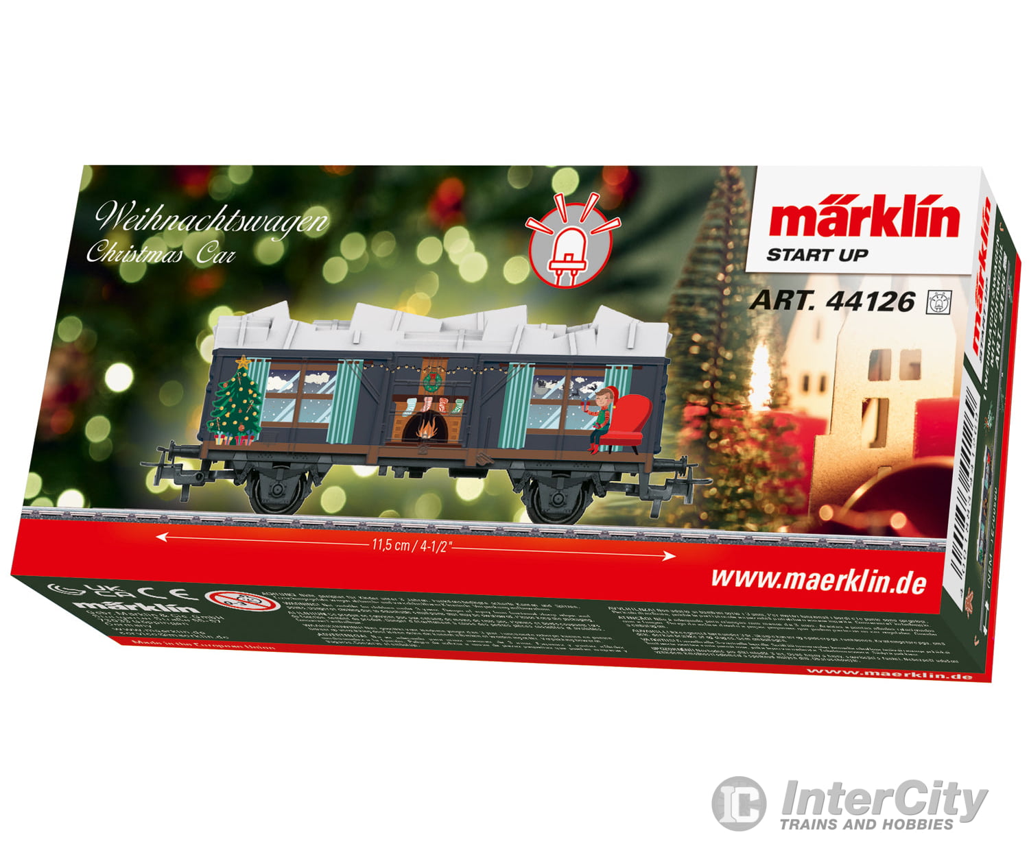 Model: This is a model of a gondola with an attractive Christmas design. The car is loaded with a battery-powered light module. The light module is designed as an illuminated cargo of gifts. The car has Relex couplers, and the batteries are included. Car length 11.5 cm / 4-1/2".
