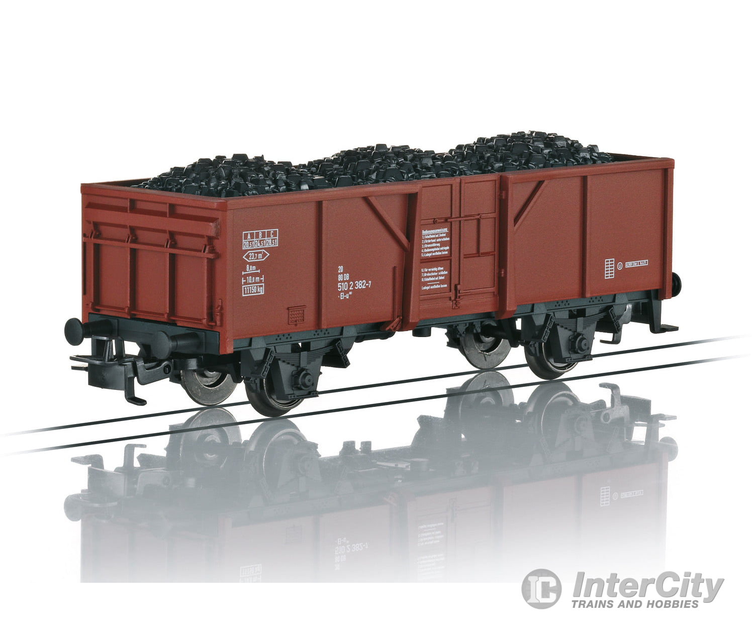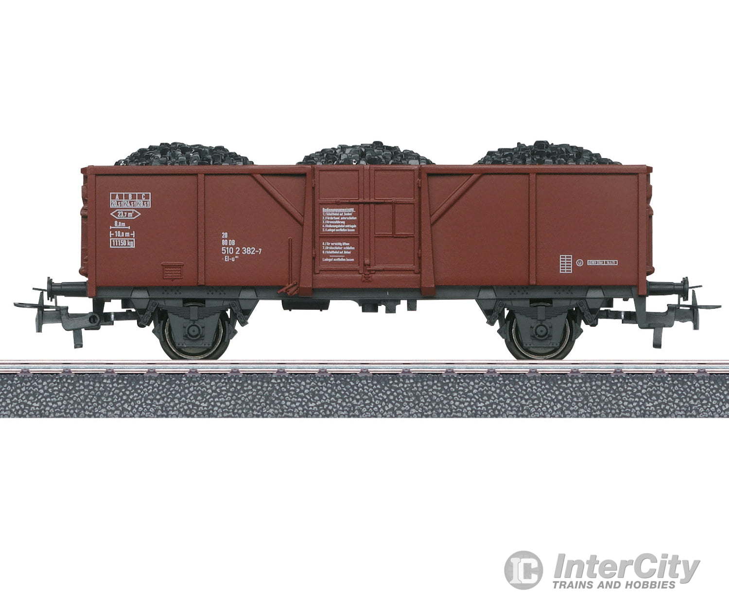 Center Unloading Cars.A center unloading car with a load of coal as was often seen in the Fifties and Sixties in freight service. Its advantage was fast and affordable unloading of the coal at small consignees.