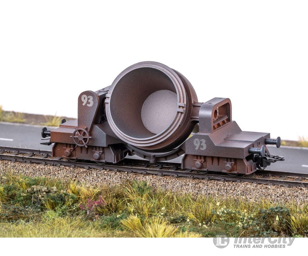 Model: Frame made of metal. The ladle can be tipped to the side and is removable. The cars have an authentically weathered paint scheme. Both cars are individually packaged inside a master package.