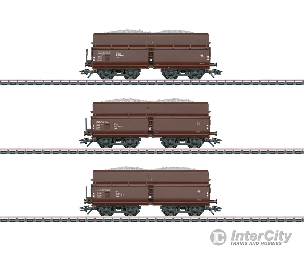 Prototype: Three Austrian Federal Railways type Fad (former DRB type OOtz 43) four-axle type hopper cars. Version with medium height upper superstructures and brakeman's platforms. Used to transport limestone. Standard design pressed sheet trucks, without lower beams welded in as reinforcement. The cars look as they did around 1971.