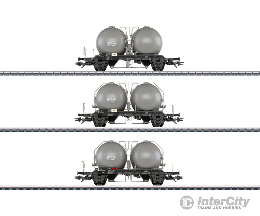 Model: The cars have partially open frames. The piping, platforms, and appliances are separately applied. All the cars have different car numbers. The cars are individually packaged and come in a master package. Length over the buffers per car 10.5 cm / 4-1/8". Total length approximately 32 cm / 12-5/8". DC wheelset per car E700580.