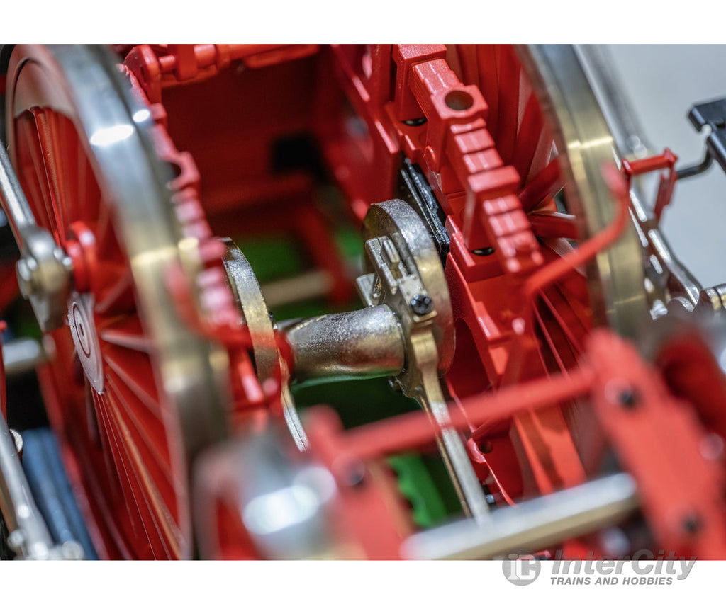 An accessory package with a reproduction of the prototype coupler, smoke fluid, and gloves is included with the locomotive. The locomotive is mounted on an aluminum base painted black for display purposes. Minimum radius for operation 1,020 mm / 40-3/16". Length over the buffers approximately 73.8 cm / 29". Weight approximately 9.2 kilograms / 20 pounds 4 ounces.