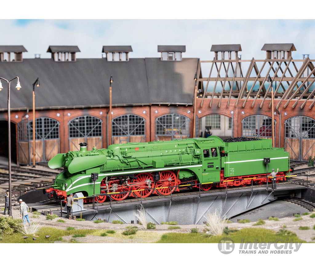 Prototype: GDR German State Railroad (DR/GDR) express steam locomotive, road number 18 314, with coal firing and a type 2´2´T34 coal tender. Rebuilt version as an experimental locomotive of the VES-M Halle (Saale) (Railroad Research and Development Locomotive Management Department). Version with a "Reko" rebuilt boiler and partial streamlining, using the road number IVh as a basis (former Baden IV h). Witte smoke deflectors and inductive magnet on one side included. The locomotive looks as it did around 1962/1963.