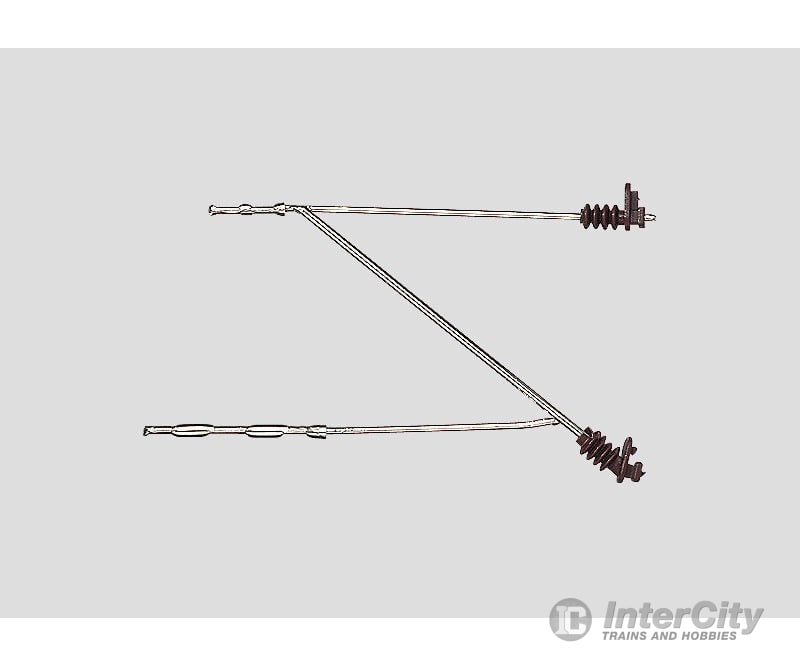 This hanger arm is made of steel wire with hangers for contact and messenger wires. It can be installed on regular masts and on tower masts. 5 pieces to a package.