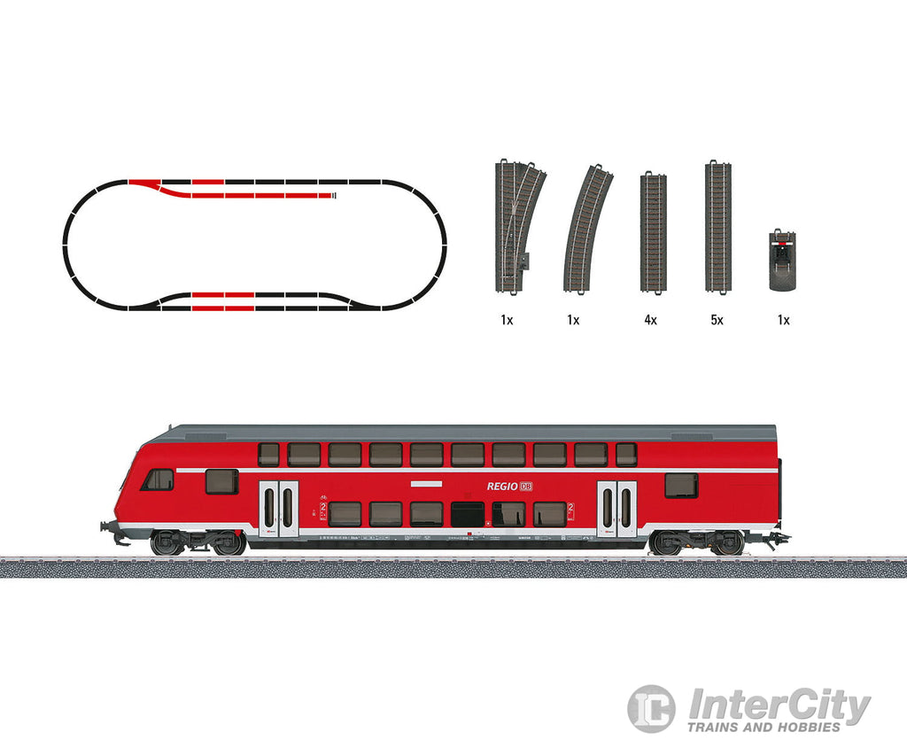 Contents: 5 no. 24188 straight track, 4 no. 24172 straight track, 1 no. 24224 curved track, 1 no. 24612 right turnout, and 1 no. 24977 track bumper.