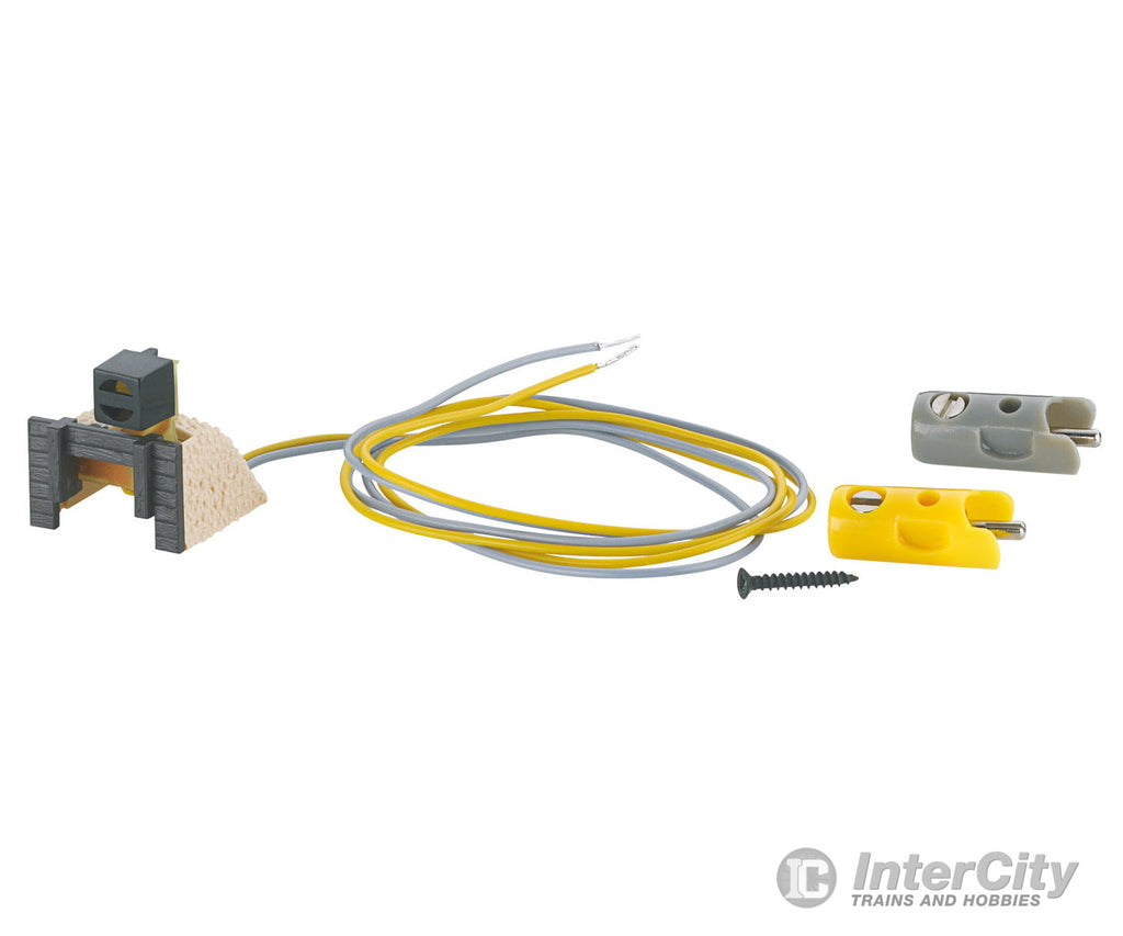 The track bumper has an LED for a lighted lantern. Length 16 mm / 5/8". The track bumper can be screwed to the end of the track. Wood screw included.