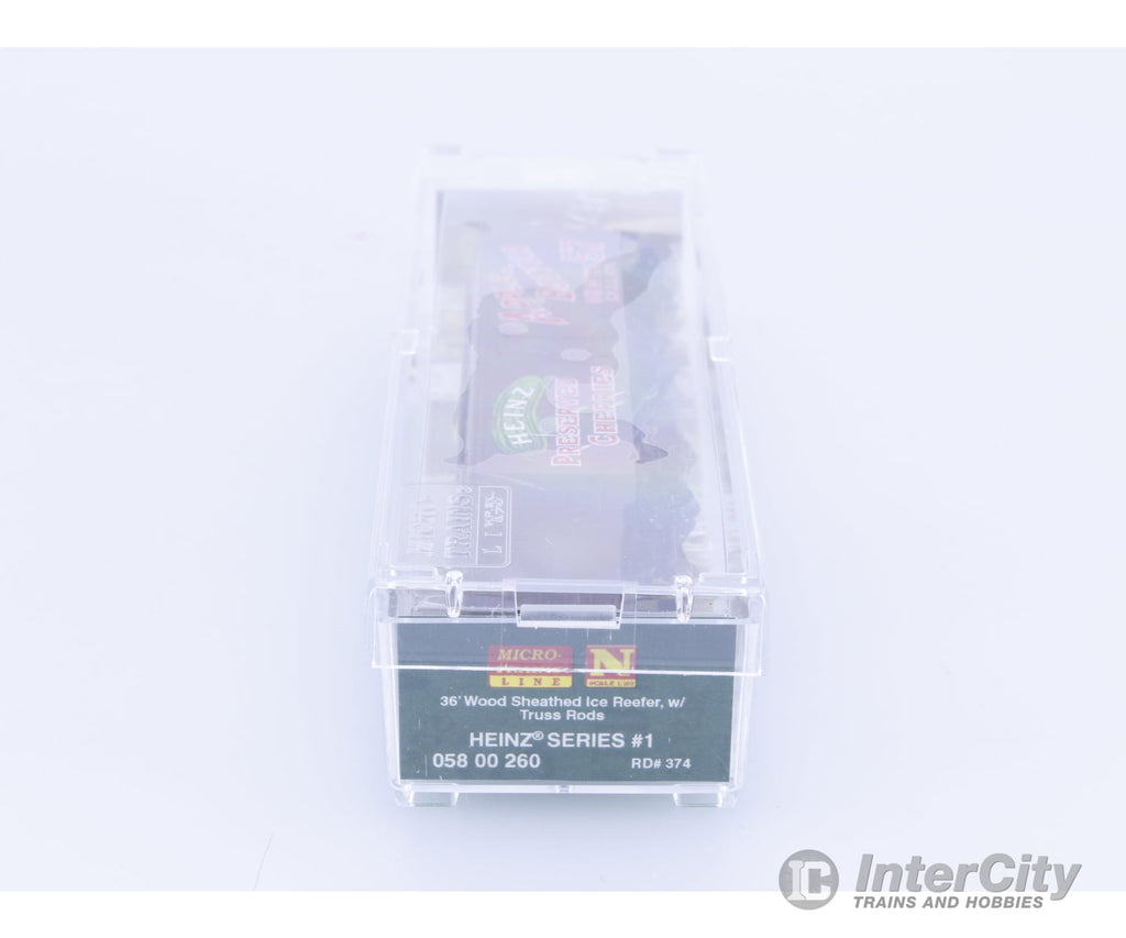 Micro Trains 05800260 N 36' Wood Sheathed Ice Reefer with Truss Rods Preserved Cherries Heinz (HPRL) 374