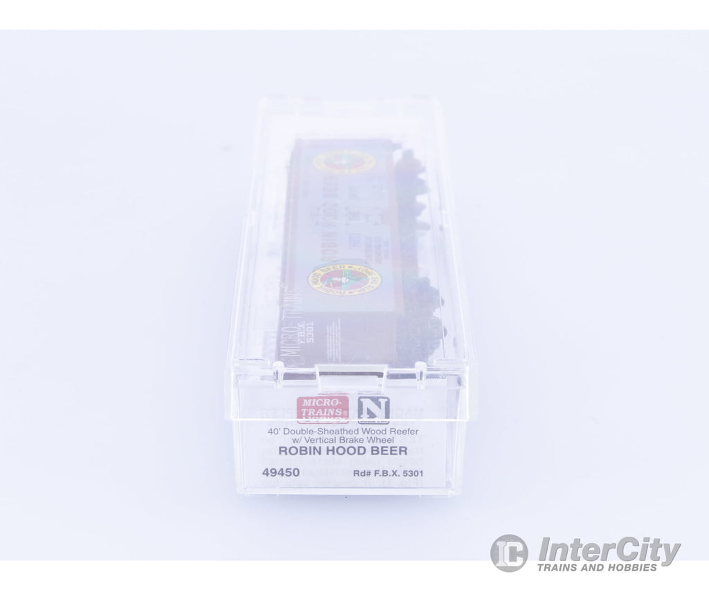 Micro Trains 49450 N 40' Double Sheathed Wood Reefer Robin Hood Fontenelle Brewing Company (FBX) 5301