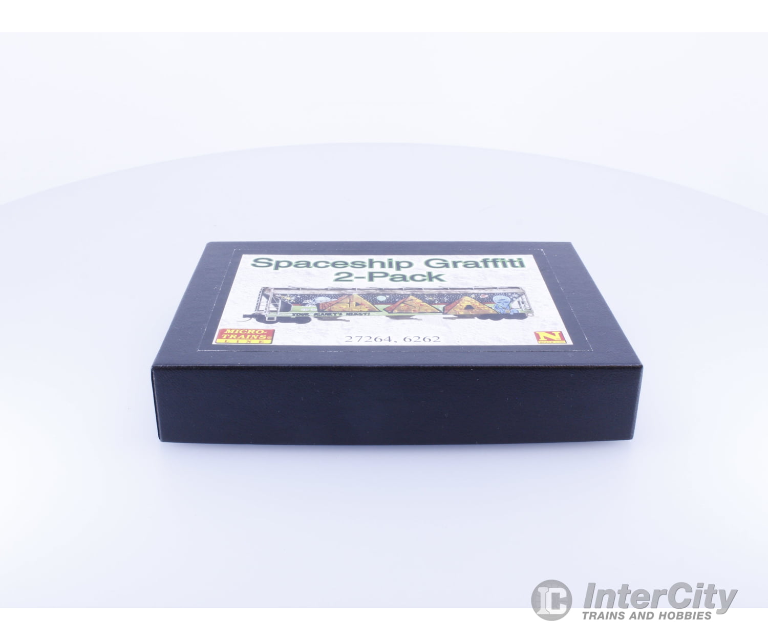 Micro Trains 99305460 N 3 Bay Hopper and 50' Boxcar, Weathered and Spaceship Graffiti 2 Pack 27264,6262