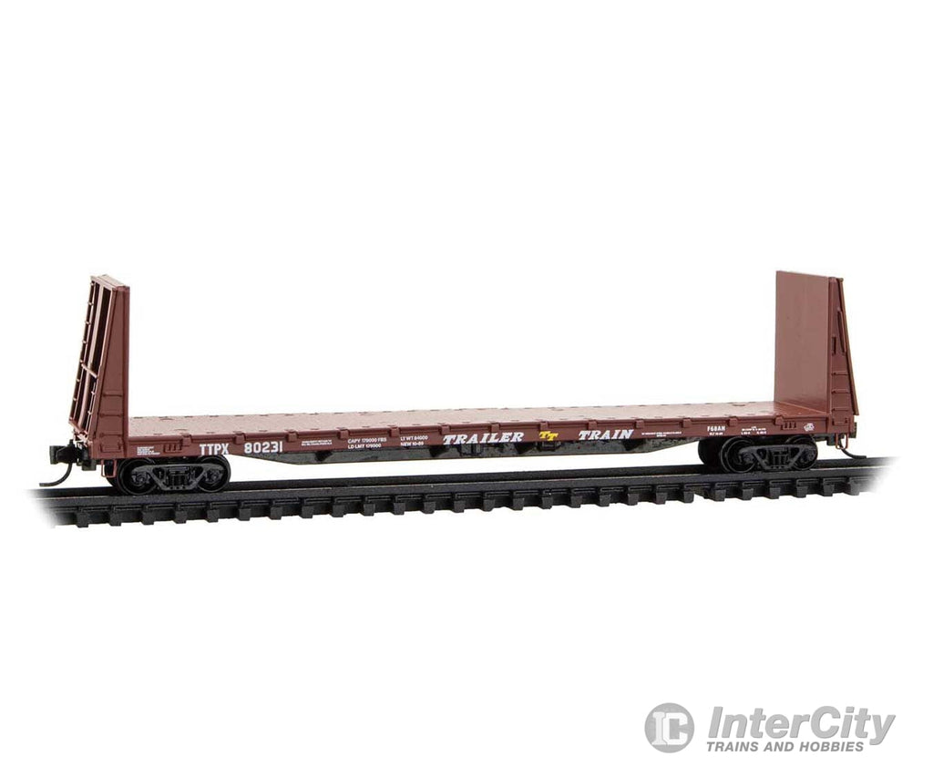 Micro Trains N 5400480 61' 8" Bulkhead Flatcar - Trailer-Train TTPX #80231 (Boxcar Red, white, yellow)