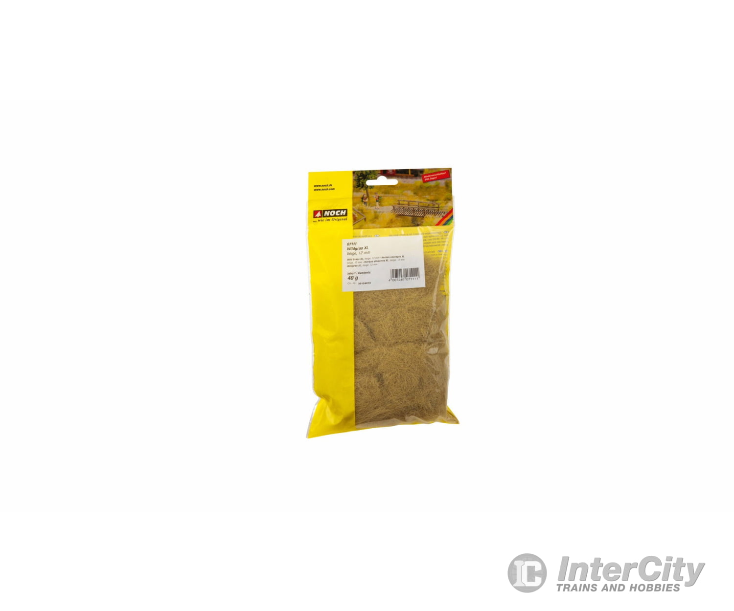 The 12 mm-long Wild Grass XL is ideal for designing high grassy areas, fields, bank areas and embankments. It's also great for 0 gauge. The grass fibres can be optimally processed with the Gras-Master. A particularly realistic effect can be achieved by mixing Wild Grass with Field Grass and Scatter Grass. Note: for a 1 m ² grassed area, approx. 300 g of Wild Grass and 500 g of NOCH Grass Glue will be required.