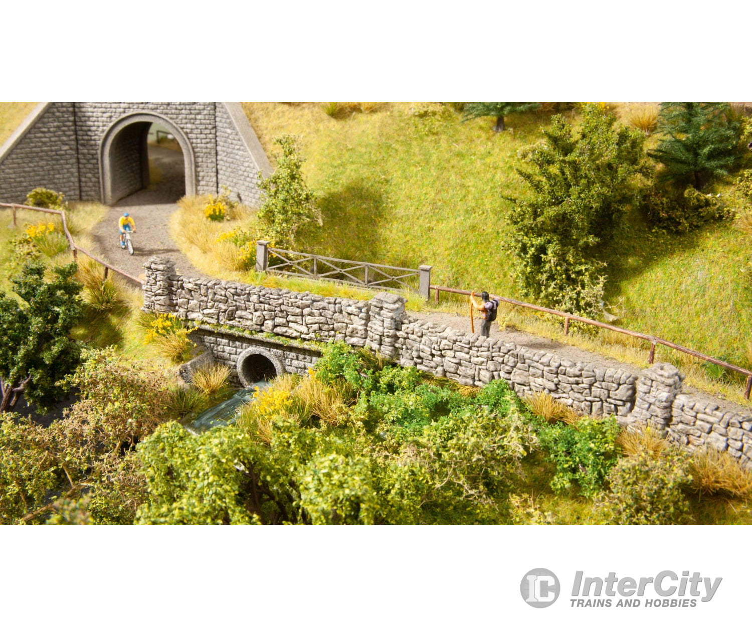 The small walls are very well suited to enclosing properties and courtyards or demarcating fields. Many different installation setups may be mastered using the individual wall parts and pillars. The walls can be cut with a hand saw and affixed with superglue or hot glue. They are realistically handpainted.