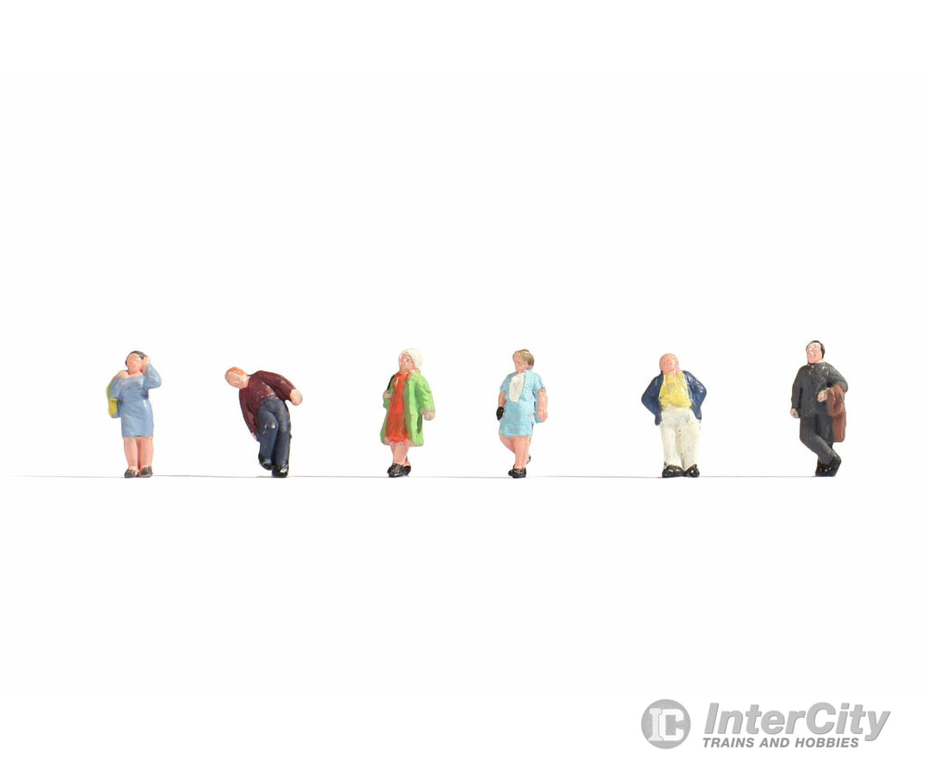 The »Pedestrians « model figure set is hand-painted and contains six figures - three of which are women, the other three are man. All of the figures wear a lot of colour. Form a turquoise knee-length dress, to a red sweater and a pair of anthracite-coloured pants, up to a formal black suit- everything is in the mix. The figures can be used in parks, in pedestrian-only zones in the inner city, but also at train stations. There are no limits to your creativity, when designing and decorating your model railway layout or diorama.